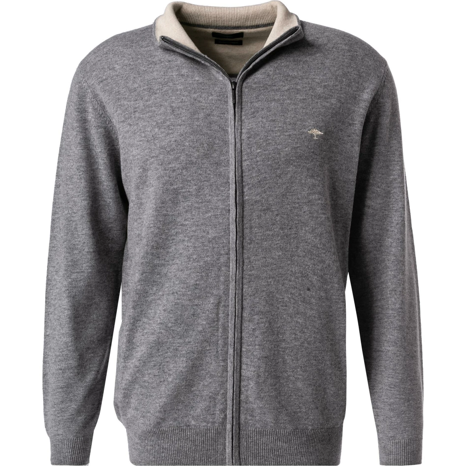 Vorderteil: Stehkragen mit Reißverschluss, Seitentaschen, Armausschnitt gemindert, Rippenstrick am Kragen, Rippenstrickbündchen am Ärmelabschluss, Rippenstrickbündchen am Saum