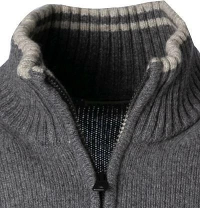 Vorderteil: Stehkragen mit Reißverschluss, Gerader Saumabschluss, Armausschnitt gemindert, Halsausschnitt gemindert, Rippenstrick am Kragen, Rippenstrickbündchen am Ärmelabschluss, Rippenstrickbündchen am Saum
