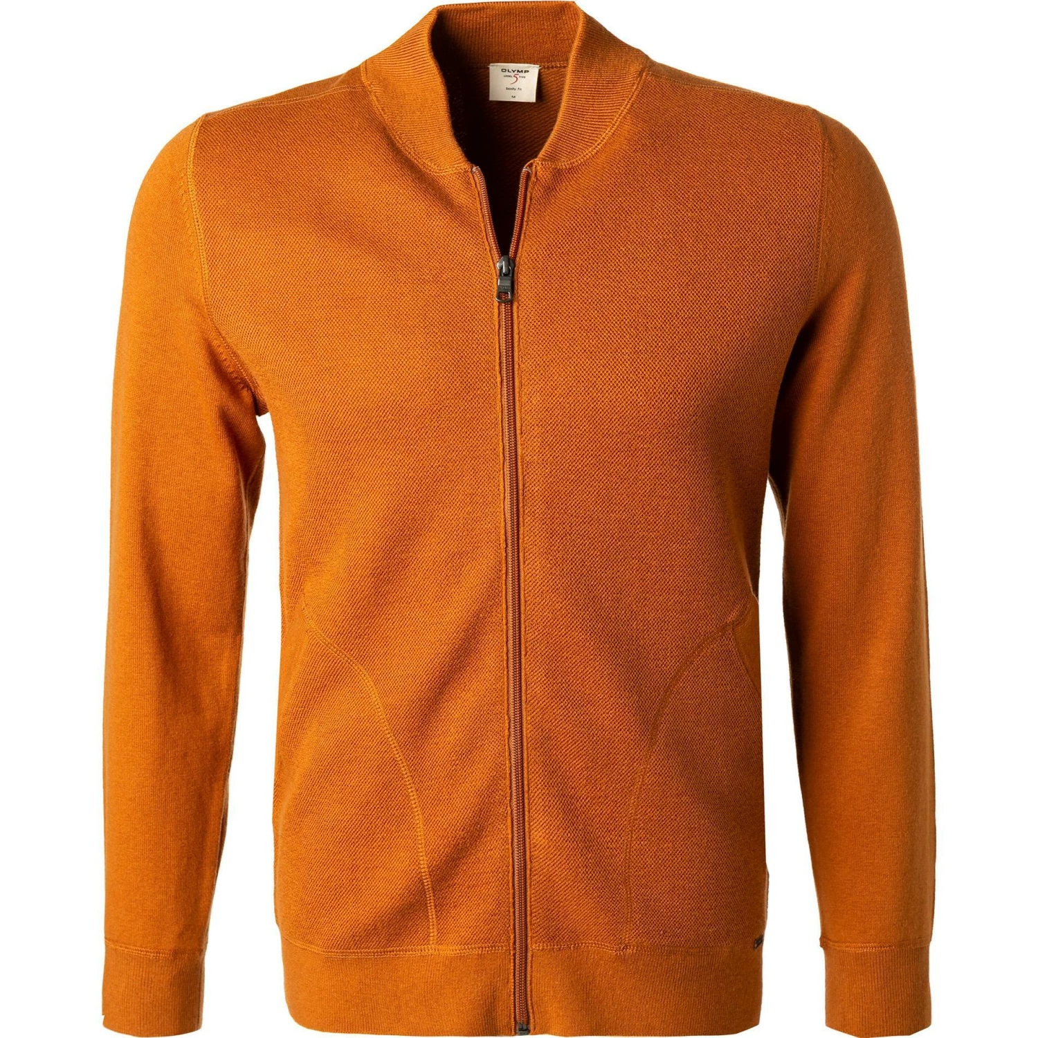 Vorderteil: Reißverschluss, Stehkragen, Gerader Saumabschluss, Seitentaschen, Armausschnitt gemindert, Rippenstrick am Kragen, Rippenstrickbündchen am Ärmelabschluss, Rippenstrickbündchen am Saum