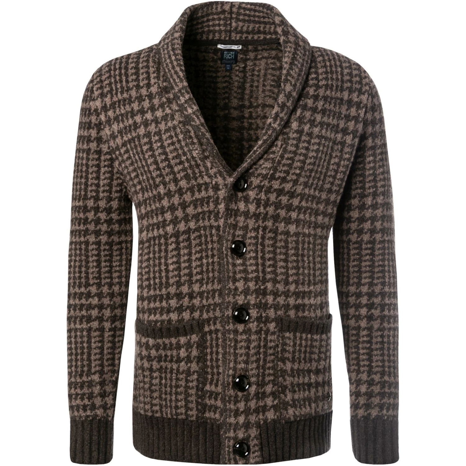 Dieser Cardigan überzeugt mit einer hervorragend soften Haptik. Das Modell im modernen Pepita Muster präsentiert sich mit einem schmalen Schalkragen und einer Knopfleiste. Rippenbündchen im farbharmonischen Kontrast setzen feine Akzente. Ein lässiger Styling Partner, der Ihre Basics auf charmante Art ergänzt.